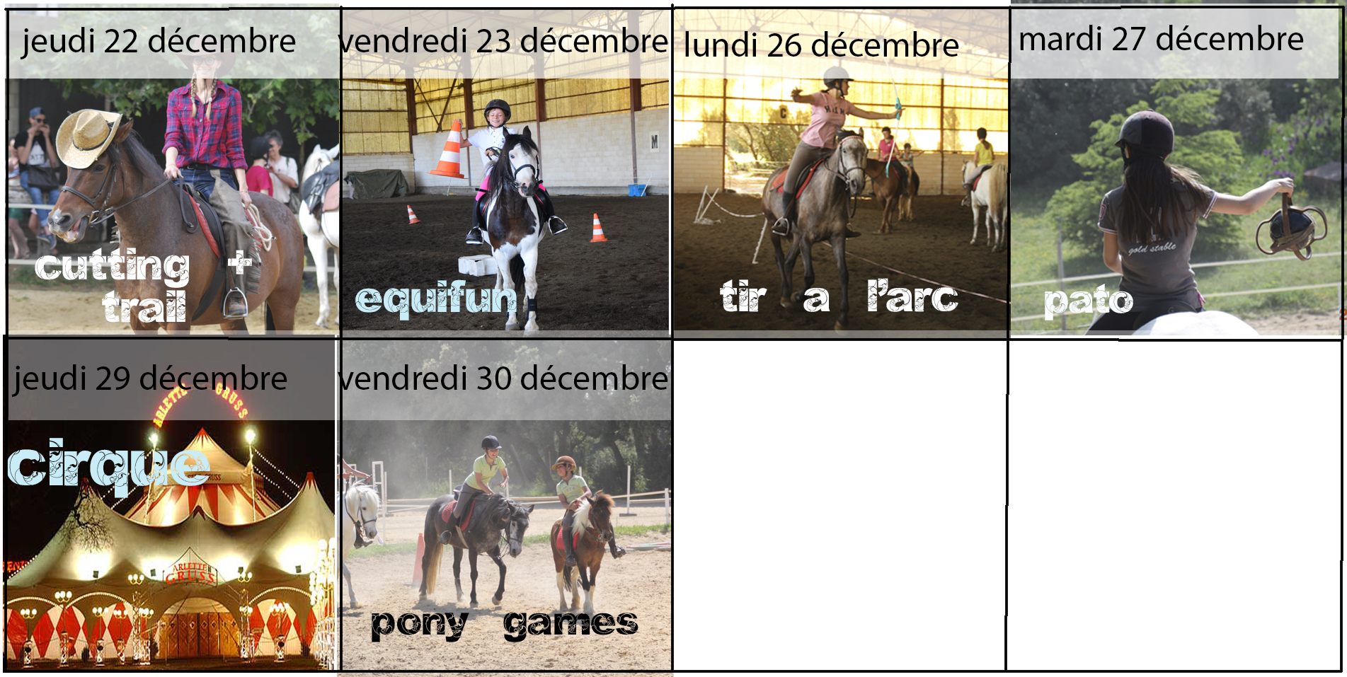 Les après-midis des vacances, Initiez-vous à diverses disciplines. Chaque après-midi vous permet de découvrir une nouvelle discipline équestre.