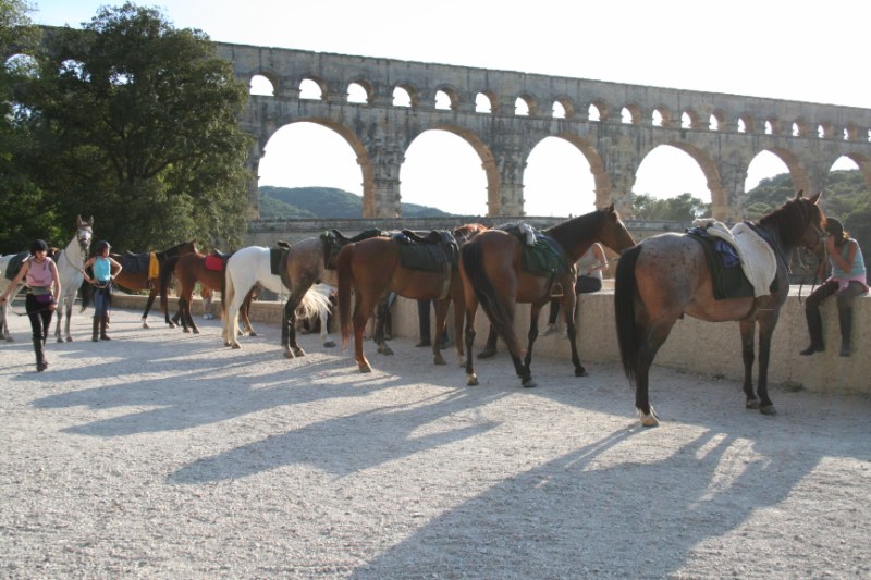 2ème jour : départ pour la grande aventure !Les groupes quitteront le centre équestre par de petits sentiers pour rejoindre le Pont du Gard situé à une quinzaine de kilomètres. Après un bon repas et un repos bien mérité les randonneurs qui le désirent sont amenés en minibus au départ des canoës. Un accompagnateur prend en charge le groupe pour une descente au fil du Gardon jusqu'au pied du Pont du Gard.