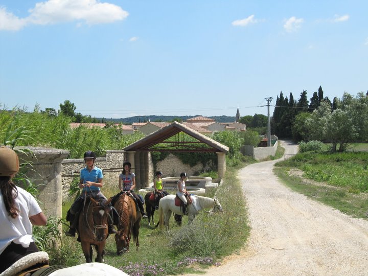4ème jour : Après le petit déjeuner des chevaux et cavaliers départ pour la 3ème étape avec si possible visite d'Uzès à cheval en passant par la place aux herbes et la fontaine d'Eure. Retour au Pont du Gard par un sentier différent de la veille. Après le pique-nique de midi visite du musée du bonbon (pour ceux qui le désirent) où chacun pourra s'approvisionner ou jeux sur les structures gonflables et attractions sur le parking Haribo. On continuera ensuite jusqu'à l'étape du soir: baignades avec les poneys et chevaux.
