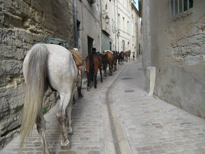 3ème jour : après le petit déjeuner, départ pour Uzès en suivant dans la garrigue les arches perdues de l'aqueduc romain. Pique-nique à l'ombre des pins puis deuxième partie de l'étape jusqu'à Uzès.Pour ceux qui le désirent nous vous emmènerons assister au spectacle équestre de Lucien GRUSS au Haras d’Uzès à 18h30. Puis soins aux chevaux, repas des cavaliers et nuit sous tente.